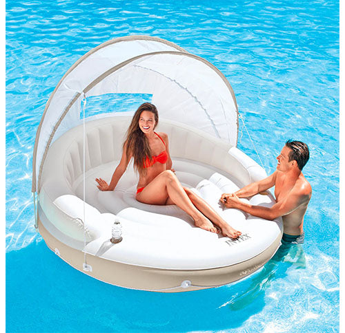 This floating island from Intex is a luxury and incredibly relaxing product with a stylish design that will make you feel like a mermaid princess. With ample room to accomodate up to two people, built in cup holder, backrest and parasol this Intex inflatable will give you all the relax and comfort you can image of. The parasol is removable and adjustable so that you can chose to relax in its shade or bathe in the sun.