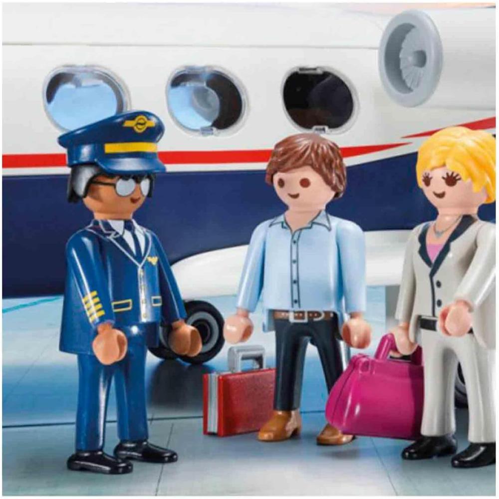 Experience luxury travel with the Playmobil City Life Private Jet. Designed for spacious comfort, it offers ample seating and cargo space, allowing passengers to relax as they soar above the clouds. The jet features foldable wheels for smooth takeoff and landing. This set includes three detailed figures, briefcases, cups, and other accessories, making it perfect for imaginative play and creating your own high-flying adventures.