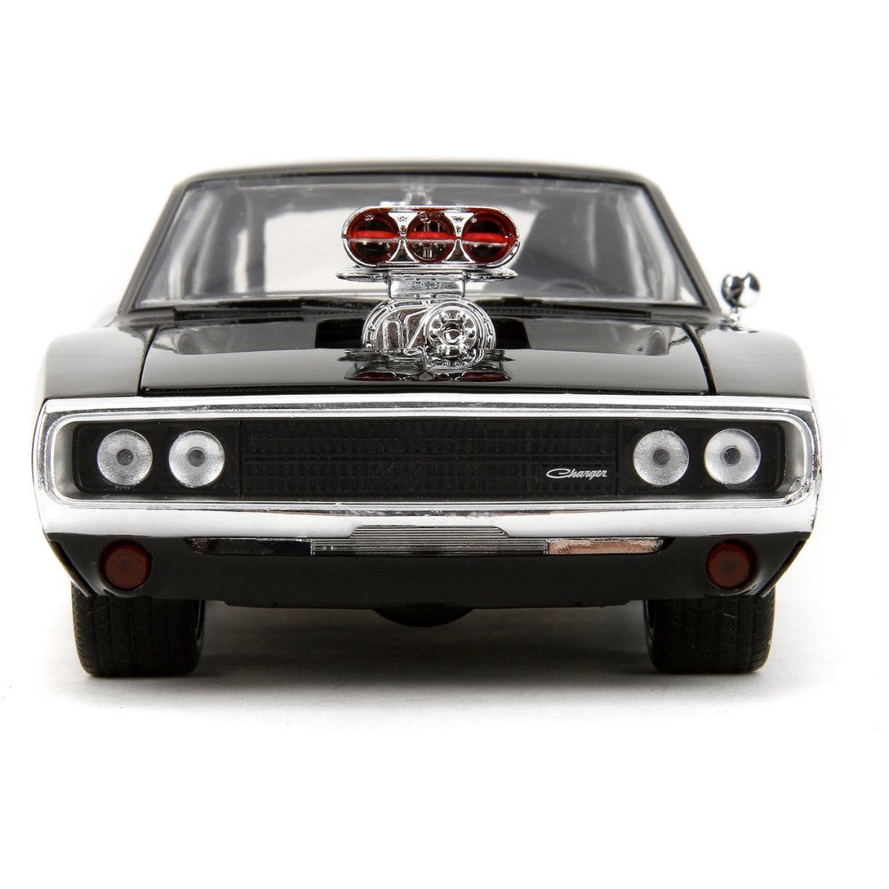 Jada Toys Model car Dodge Charger R/T by Dominic Toretto in Fast and Furious • The cast model car with freewheel: Dodge Charger R/T 1970 Street • Replica of the film car from Fast & Furious • Scale: 1:24 (19 cm) • Colour: Black • Suitable from 8 years • Officially licensed must-have for film fans: Doms. legendary Dodge Charger Already in the 1st F&F Blockbuster “The Fast and the Furious”, the 1970s Dodge Charger R/T reveals his special role in the Fast and Furious film series: