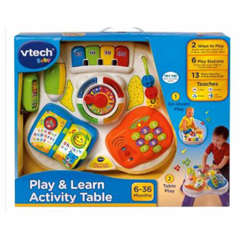 Let's learn and play! Introduces numbers, colours, animals, musical notes, daily routines and more. With light-up buttons and lots of manipulative features your child will learn age appropriate curriculum in a fun and engaging way. Role-play phone and interactive clock encourage imitative and independent play while the piano keys play cheerful music and the balloon button plays cute sing-along songs. Removable legs allow for easy storage and sit-down play. Includes 5 sing-along songs and 8 fun melodies. Features lots of fun phrases in a British voice for baby to learn and recognise! Encourages motor skills and hand eye co-ordination.