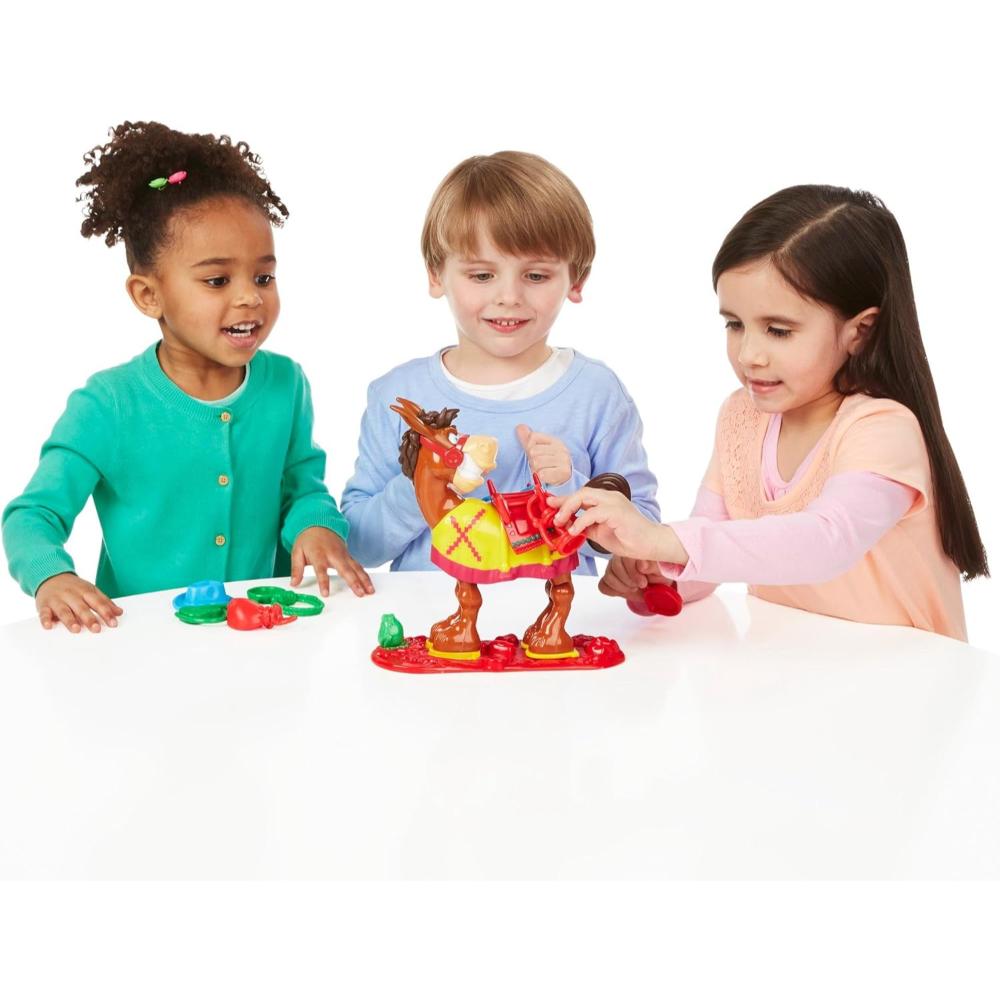Get ready for tons of excitement with the Hasbro Buckaroo Game! Challenge your skills by stacking saddles on a lively mule who can buck at any moment. This fast-paced game keeps everyone on their toes, making it perfect for family fun and friendly competition. Test your steady hand and nerves as you carefully add each saddle—will you avoid the buck and come out the winner? Add some thrilling action to your game night with Buckaroo!