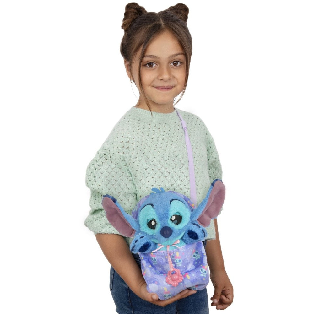 Baby Paws Disney Stitch is the adorable main character from Disney Lilo & Stitch! Stitch is sleeping soundly in a purple blanket with a fun print, with a pacifier in his mouth and his eyes closed. Open the blanket to reveal a soft, flexible body with movable legs. As soon as you take the pacifier out of his mouth, his eyes open and Stitch will make the sweetest sounds. And when you’re not playing with Stitch, he’ll beg for your attention. Put the pacifier back in his mouth, and his eyes close again and you’ll hear sweet sleepy sounds. Sleep tight, Stitch!