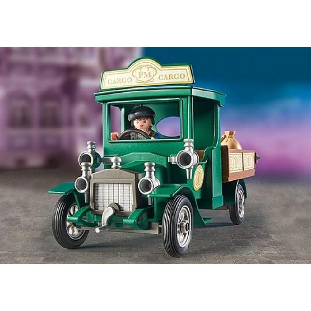 Ready for time travel? Get the lovingly designed Victorian Cargo Truck from PLAYMOBIL and start your own adventure. This PLAYMOBIL Oldtimer has many authentic details, rotating wheels, a loading area for tools and other accessories for inspiring play hours. Vehicles such as the Ford Model T produced at the beginning of the 20th century served as inspiration for this model. A great playset for car enthusiasts and fans of the nostalgic Dollhouse range. The set includes a PLAYMOBIL figure, a vintage car with loading area, a hand truck, various tools and other accessories. The flap of the loading area can be opened.