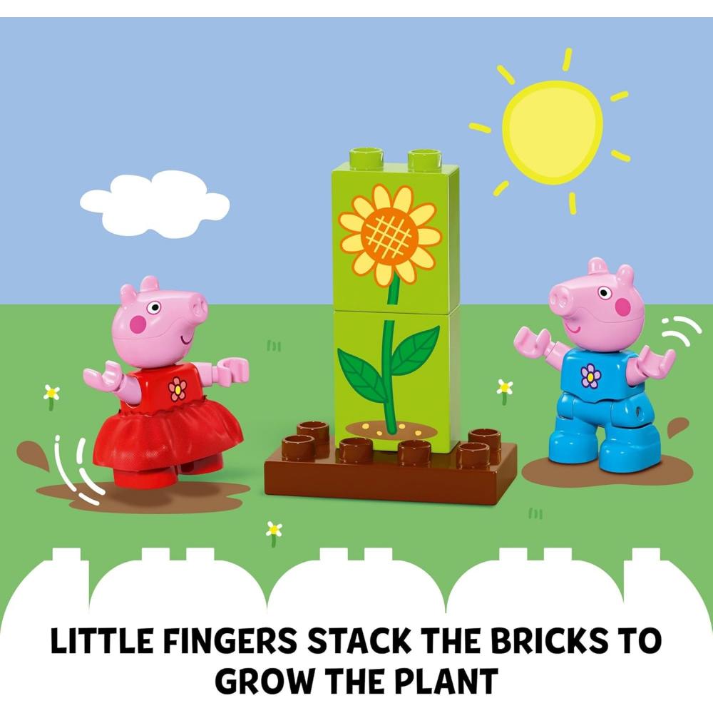 Nurture preschool kids’ caring instincts as they help the flowers grow with the LEGO DUPLO Peppa Pig Garden and Tree House playset. This Peppa Pig toddler toy comes with 2 characters from the TV show, a watering can, gardening fork, packet of seeds and a fun tree house to explore.