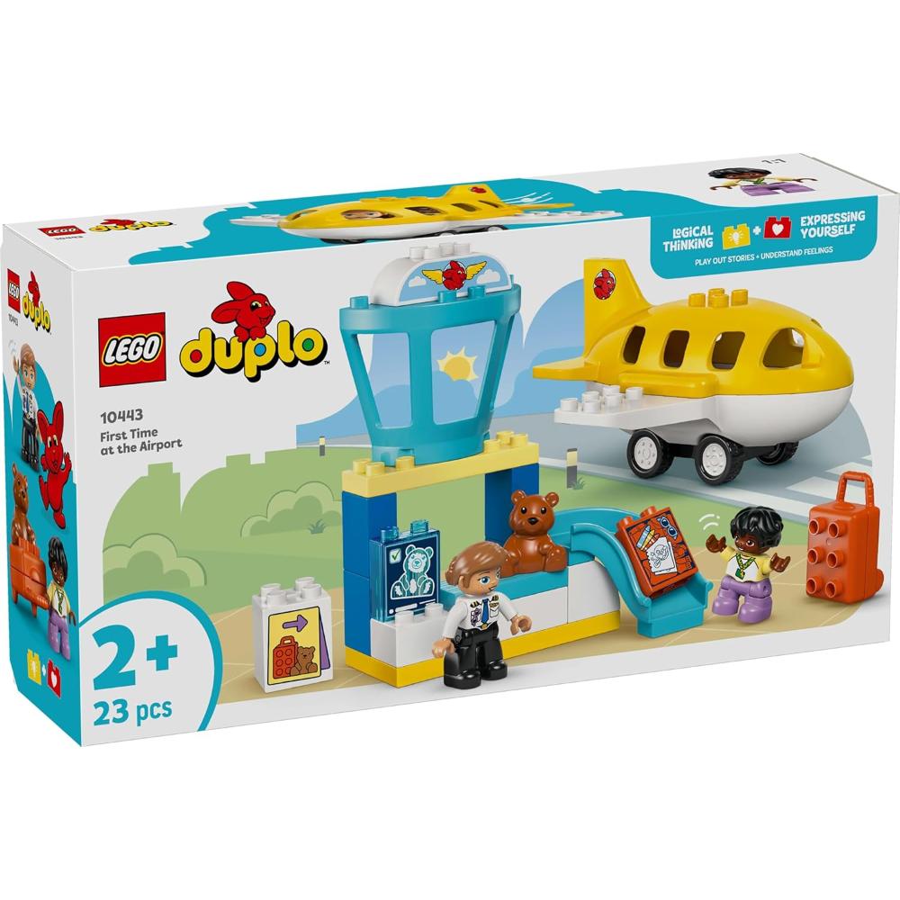 First Time at the Airport is a toddler learning toy featuring a plane toy with a removable roof to help preschoolers explore travel, emotions and storytelling. This toy for 2+ year olds comes with child and pilot DUPLO figures, plus a LEGO DUPLO teddy bear, giving toddlers different characters to role play.