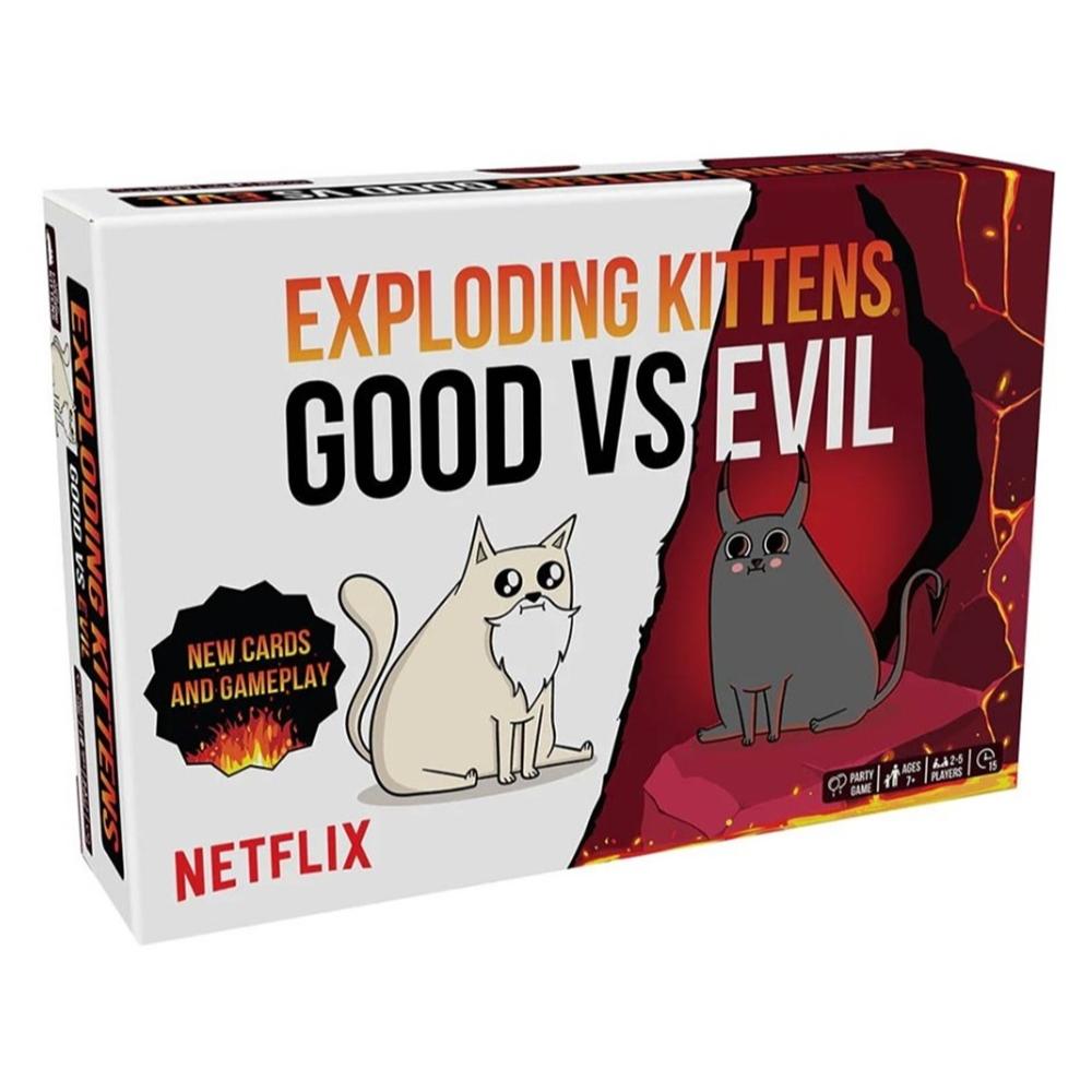 - Bring the battle of Good vs Evil to your next game night, party, or family gathering. This portable game is great for travel, quick play sessions, or anytime you want to add a bit of divine fun to your day. Combine it with other Exploding Kittens expansions for even more explosive action.