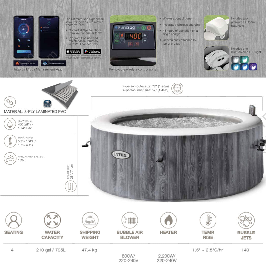 The Intex 28440 Bubble Spa round inflatable whirlpool tub for 4 people with heating water pump, filter cartridge and all accessories, is the perfect tool for best relaxing at home or in the garden.
