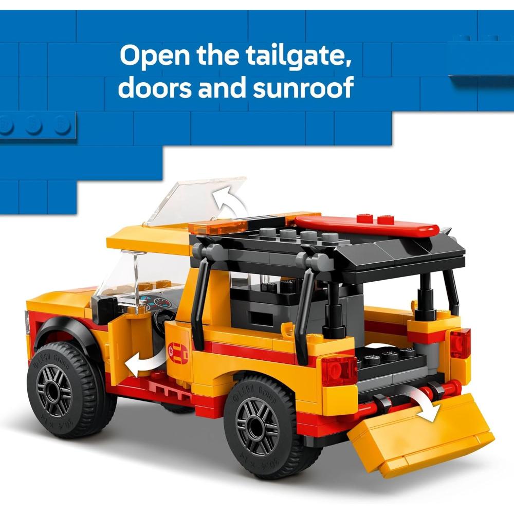 Kids can dive into action-packed seashore adventures with the LEGO City Lifeguard Beach Rescue Truck set for boys and girls aged 6 years old and older. This lifeguard vehicle toy has everything kids need to build an off-road truck, lifeguard and surfer minifigures and a shark toy figure for imaginative play.