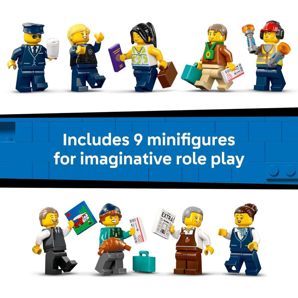 - MODEL AIRPORT – Kids’ play will take flight with this Build Together LEGO® City Airport with Airplane playset (60502) for ages 8+, including an airport terminal, passenger airplane and 9 minifigures