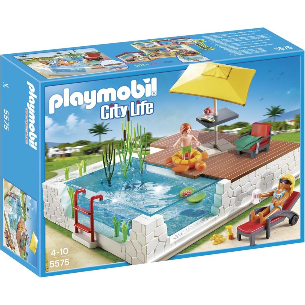 The PLAYMOBIL Swimming Pool with Terrace is the best place to relax and enjoy yourself while watching your child having fun, swimming around with the inflatable turtle ring in the fillable pool. Or kick off your sandals, apply your sun lotion and enjoy the sun while laying back on the lounger at the side of the pool. The set comes complete with 2 PLAYMOBIL figures and accessories.