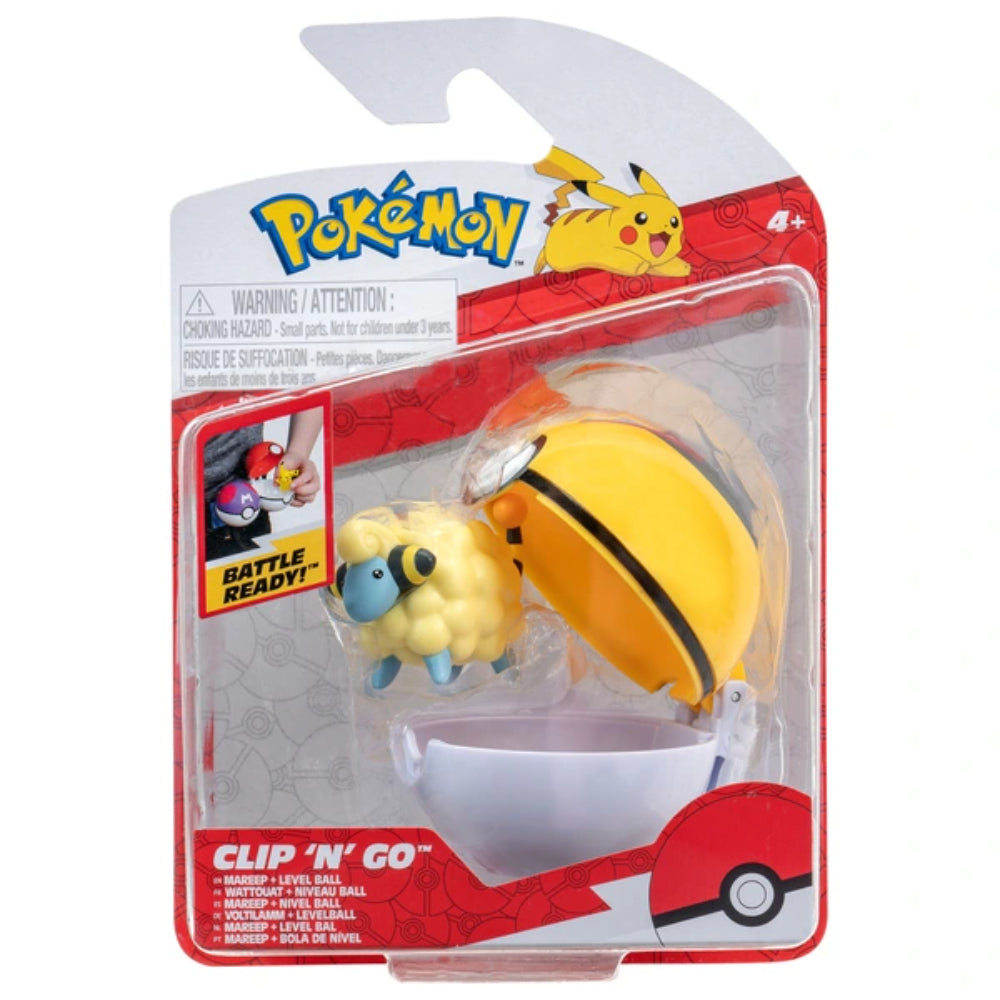 Train for battle with the Pokémon Clip ‘N’ Go. Attach your Poké Ball to any belt or Clip ‘N’ Go Poké Ball Belt and collect Pokémon as you travel far and wide. Simply open the latch on the back of the Poké Ball and place the included Mareep, or any other 5cm Pokémon Battle Figure (each sold separately). Clip ‘N’ Go Poké Ball Belt and additional 5cm Battle Figures sold separately.