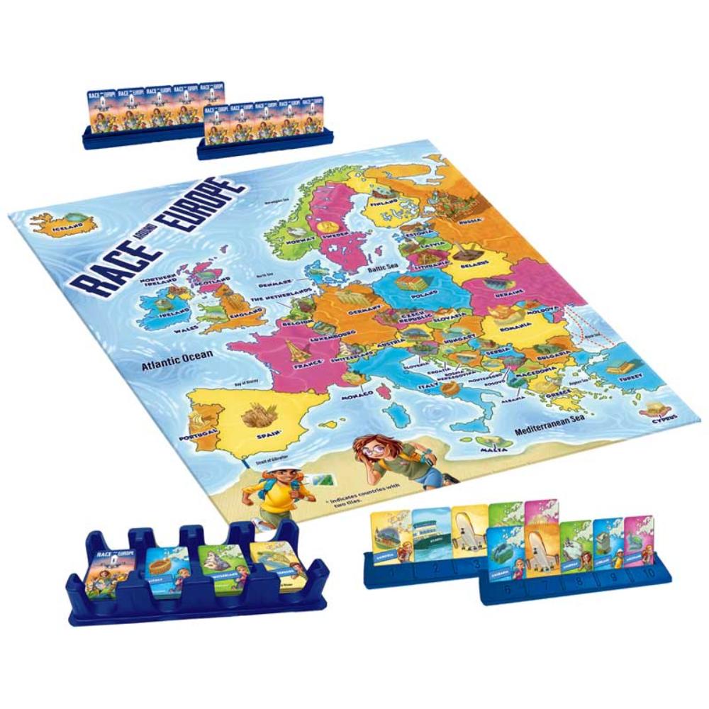 Take your travels by land, boat or plane as you attempt to race around Europe! No game or route is the same! From the creators of Ticket to Ride, a fun game where kids can learn about Countries, Capitals and Landmarks as they travel across Europe! Players use Country and Transportation Tiles to chart a course across Europe. The first player to complete a 10 trip journey, where each trip connects to the next, is the winner! For 2-4 players.