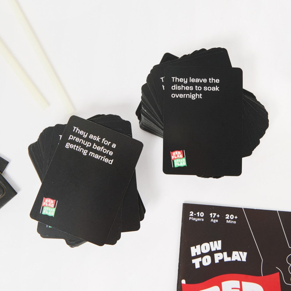 Revealing Dating Preferences – The Judge secretly decides how they’d react to each dating scenario card. But can the other players accurately predict if it’ll be a Red Flag or a Green Flag? Get ready to wave those two flags and delve into some dating drama!230 Scenario Cards – Explore a range of dating dilemmas with a whopping 230 cards! There’s no shortage of dating topics to divide your friends. Ridiculous Answers – The raising of the Judge’s flag will reveal some shocking personal dating preferences and is set to ignite heated debates. This is the perfect game for a teen sleepover with friends, or an adult dinner party.
