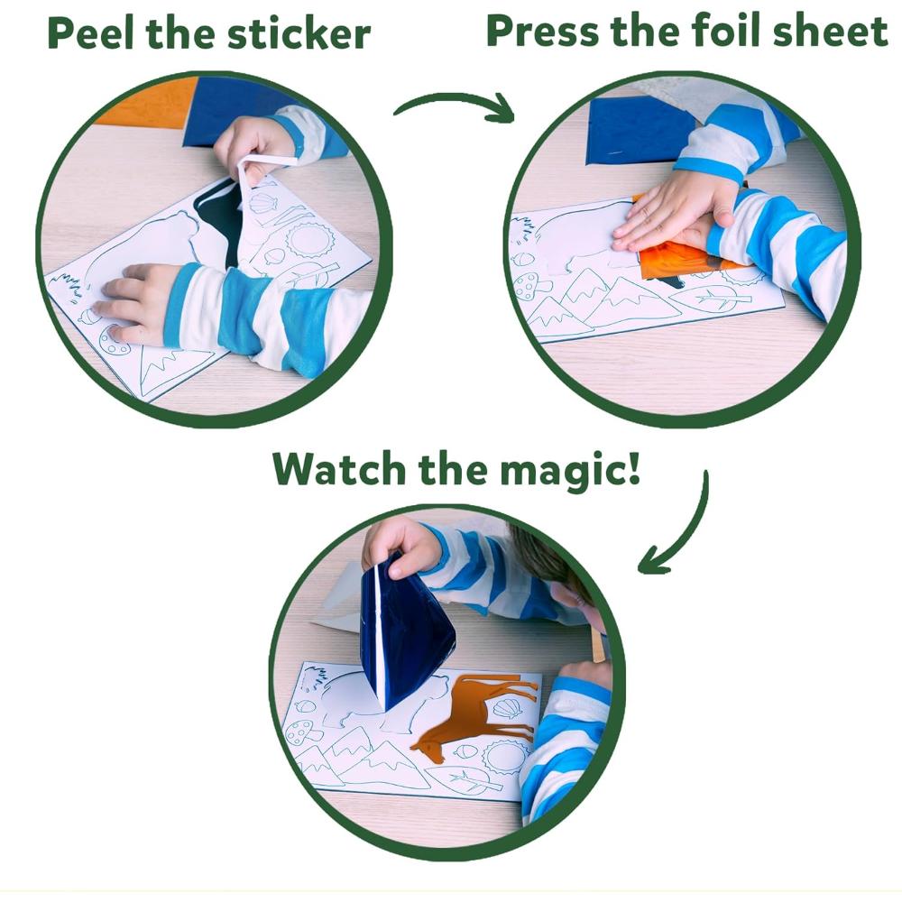 Let your child's imagination soar with this magical, mess-free foil art and craft activity. They can create stunning pictures featuring planets, astronauts, shooting stars, and more, sparking hours of creative play! Parents will love this no-mess creative activity. Keep kids engaged and entertained at home, during playdates, art classes, or even in the classroom without worrying about any mess.