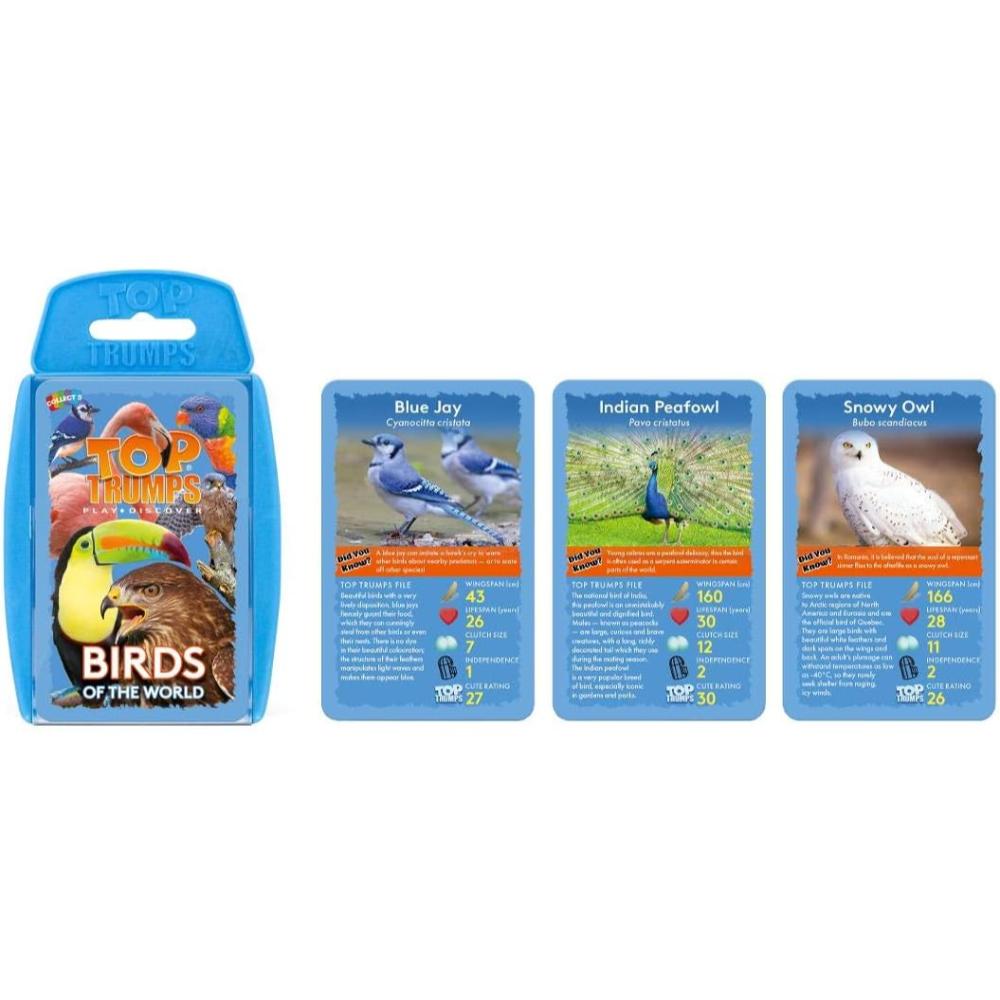 Entertaining, educational card game loved for bringing your favourite birds to life. Play Top Trumps anytime, anywhere, with as many people as you like Discover the blue jay’s wingspan, the Atlantic puffin’s clutch size and the snowy owl’s lifespan.