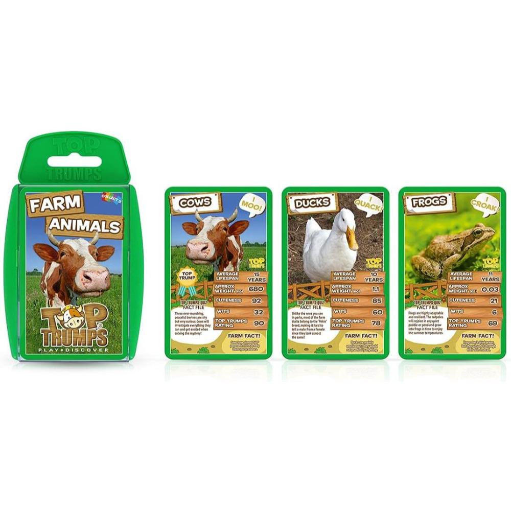 Entertaining educational card game loved for bringing your favourite Farm Animals to life. Play Top Trumps anytime, anywhere, with as many people as you like. Find out the average lifespan of a Donkey, the wits of a Fox and the cuteness of a Sheep in this edition of Top Trumps - Farm Animals.