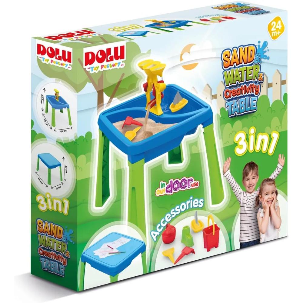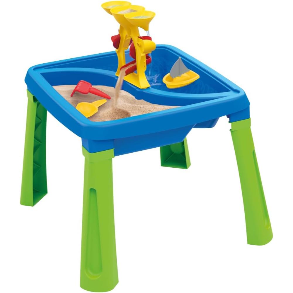 - Includes: 1x Sand and Water 3-in-1 Creativity Table, accessories, assembly instructions. Can be used as a table by placing the lid. For indoor and outdoor use. Approximate Dimensions: 54.2 x 45 x 45 cm.